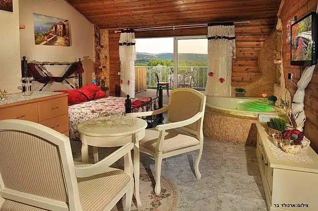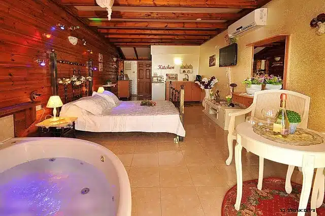 במתחם 3 סוויטות מוגבהות עם מרפסת נוף גדולה המשלבות עץ ואבן עם בריכה גדולה ומפנקת פינת ישיבה מרכזית ופינת מנגל.